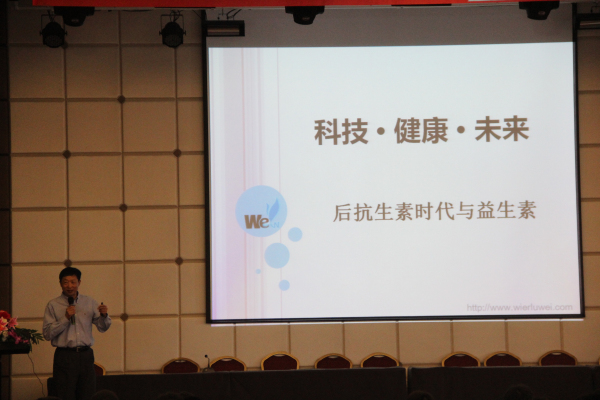 会议的主要内容有:福建农林大学动科院修金生教授为大家带来主题为《猪场抗体检测及疫病实验室诊断》的报告、福建农林大学动科院教授俞道进老师的《换个角度看猪病》、威尔潞威动物保健品有限公司梁彦明董事长带来的《后抗生素时代与益生素》,提倡畜牧行业合理使用抗生素等等。奥姆龙生物工程郭金权博士也精心准备了题为《母猪产程延长的发生机制及处理方案》与在场的畜牧业同行们一起交流学习。