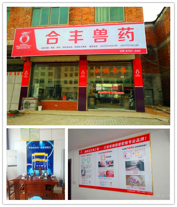 2016年6月10日位于江西省赣州瑞金市红都大道沙子岗的瑞金合丰兽药店正式加盟福建奥姆龙生物工程有限公司,成为奥姆龙生物工程赣州区第二家合作加盟店。