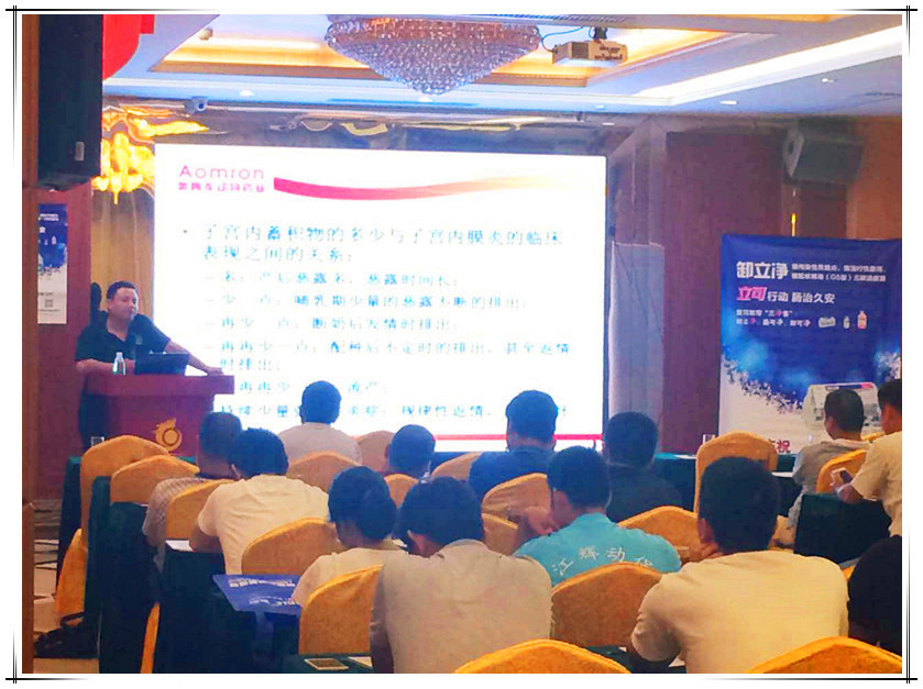 2016年8月15日江辉动物药业邀请奥姆龙公司参加广东河源市百丽龙城大酒店与海利生物科技股份有限公司联合举办高峰论坛暨卸立净上市发布会,此次会议参会人数80人,200头以上大型母猪场60家,会议重点推广公司产品:速产康、宫炎百病消、姆益健、金立维它、奥康得乐、阿米泰诺,公司技术部总监郭金权老师在会上针对《夏季母猪围产期完美解决方案》进行详细系统的讲解和培训,通过会议深度系统的讲解、交流,客户朋友们加深了对公司产品的了解,进一步提升了健康养殖的理念!