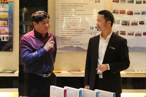 2017年4月13日下午,龙岩市人大副主任苏立波一行莅临福建奥姆龙生物工程有限公司调研。期间奥姆龙公司常务副总张浩超全程陪同,并汇报了公司的企业文化及生产经营情况。
