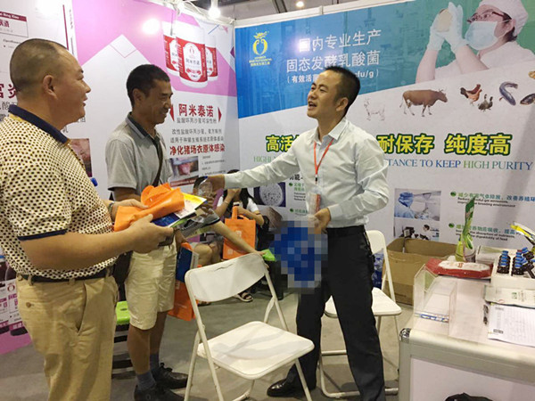展会上徐见光老师为前来咨询的广大客户提供了专业的介绍,展示了公司最新的技术及产品,速产康、宫炎百病消、乳酸菌等系列产品引起了大量养猪人驻足观看和了解,更好的提升了公司的知名度,为开拓江西市场奠定了基础。