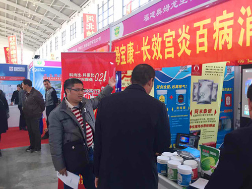 展会上冮海波经理为前来咨询的广大客户提供了专业的介绍,展示了公司最新的技术及产品,益美健、开胃健长、阿米泰诺、奥喘康等系列产品引起了大量养猪人驻足观看和了解,更好的提升了公司的知名度,为开拓东北市场奠定了基础。