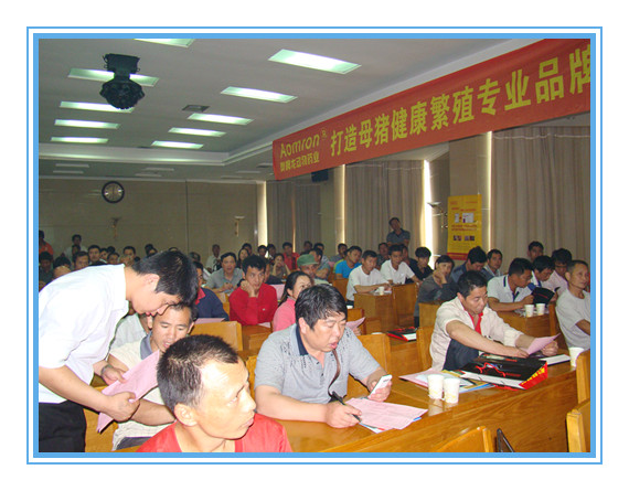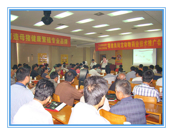 2012年5月31日,公司技术总监郭金权博士与华北销售总监程炎明在南昌新建县以会议的形势向养殖户推广母猪健康繁殖新技术,解答如何正确使用公司产品。会议现场气氛热烈,养殖户踊跃参与互动,让养殖户更深入的了解奥姆龙在母猪健康繁殖方面定位的专业性和品牌性。