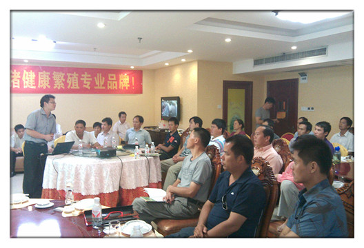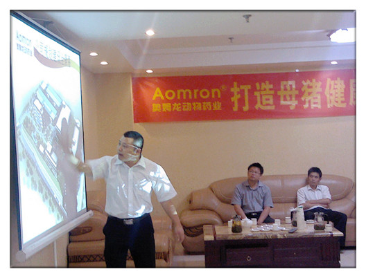 2012年6月12日下午,福建奥姆龙动物药业有限公司营销总监杨思齐、技术服务老师余建、广西大客户经理唐明明联合广西优联公司下属团队宾阳忠发兽药饲料技术服务部,在广西省宾阳县良源假日酒店康乃馨餐厅组织了广西首届《猪场夏防要点——母猪如何健康繁殖》专题技术讲座。会上奥姆龙营销总监杨思齐热情的向宾阳养殖朋友介绍了奥姆龙公司的市场定位、发展历程及企业文化,让宾阳广大养殖朋友对奥姆龙专注母猪健康繁殖专业品牌有了全新的认识,并踊跃的购买公司产品进行尝试,成功的拉开宾阳会议序幕。