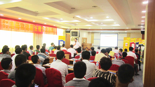 2012年8月23日,福建奥姆龙动物药业有限公司营销总监杨思齐和技术总监郭金权在连江开展《猪场夏防要点——如何提升母猪健康繁殖》技术交流会议,针对养殖户面临的问题进行面对面的交流。