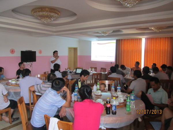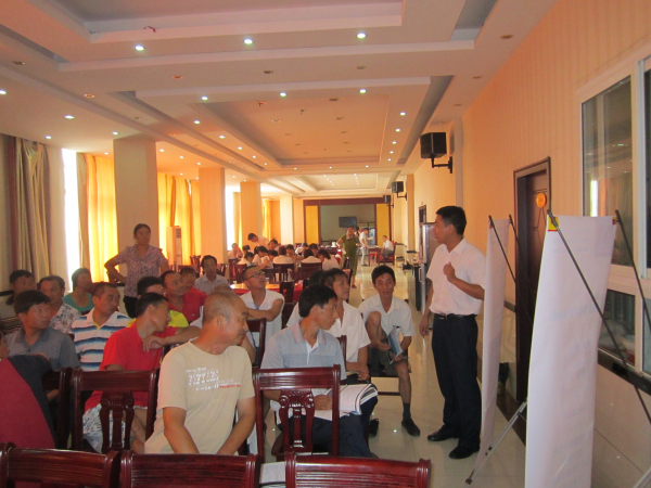 公司分别在2013年7月12、15、16日在江西新干、湖北随州、河南潢川等地召开技术推广会议。会议由公司技术部总监郭金权老师针对“夏季猪场常见问题的原因及处理方案”这一课题,结合公司的产品疗效及使用方法,做了系统的讲解,会议现场的养殖朋友们,均表示非常欢迎,这种形式的讲座,感到受益匪浅。