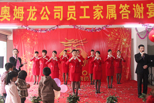 为营造良好的工作生活氛围,推进奥姆龙“企业如家”建设的理念,答谢公司员工家属对奥姆龙的支持,12月29日奥姆龙公司在厂内举行了2012年度—— “员工年终家属答谢宴”。