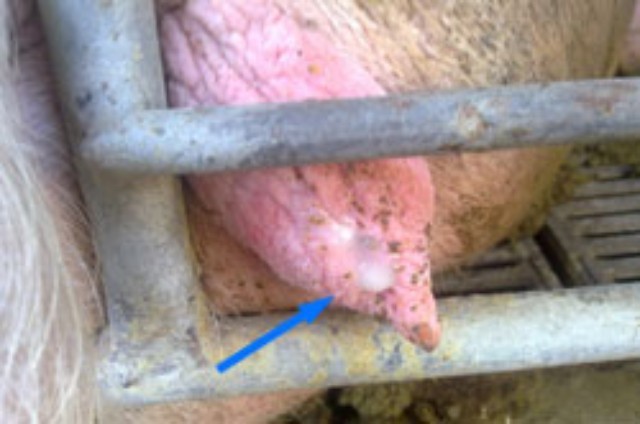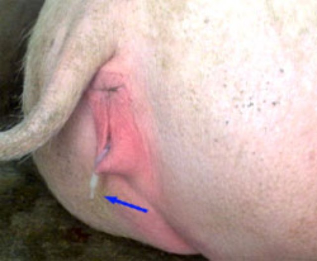 1.后备母猪出现鼻涕样阴道排出物,无腐败臭味。