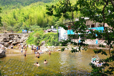 这里景色宜人,群山雄奇秀丽,这儿的山不似江南该有的温情脉脉,而是壁立千仞无依倚的伟岸,如果说同在一地的江山睡美人是柔美的女子,那无人村的山应该算是刚毅的美男子了。随着旅游业的兴盛,人们充分利用此处林幽、石奇、水清等优势,开辟了烧烤、玩水、探幽、登山等供人消闲的去处。