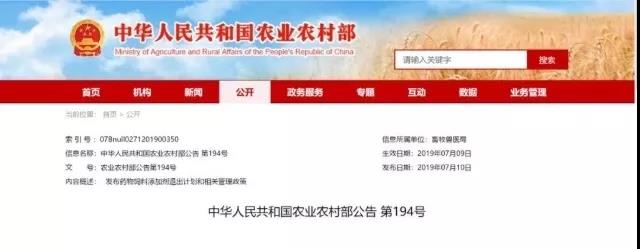 2019年7月10日农业农村部第194号公告的正式发布,标志着12种促生长药物饲料添加剂退出历史舞台已成定局。