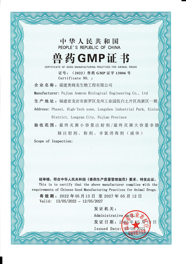 此次新版兽药GMP的顺利通过,标志着我司的生产管理、质量管理水平又登上一个新台阶。在此,我们向长期关心和支持我司发展的农业部、省、市、区主管部门、客户、同行朋友表示衷心的感谢!