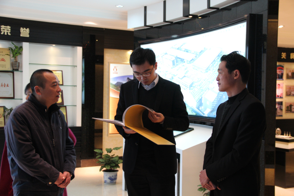 林副区长翻看奥姆龙企业文化图册