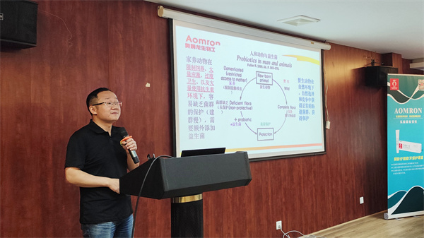专业分享环节,两位专家带来 “技术干货”。许卫华博士以《乳酸肠球菌在畜禽养殖中的运用》为题,结合学术与实践,讲解该菌的特性、肠道健康作用及应用效果,用数据案例让养殖户直观了解其在改善消化、增强免疫力等方面的优势。