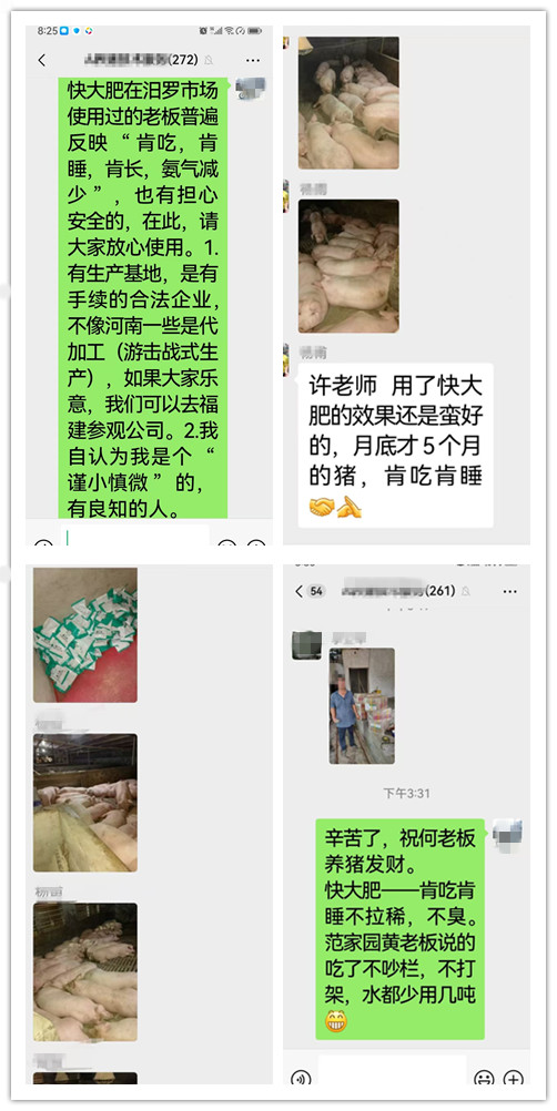 专业分享后,养殖户代表交流使用 “快大肥” 的感受。一位养殖户说:“用快大肥半个月,猪场氨氮臭味减轻,猪群皮红毛亮,长势加快,出栏品质提升。” 另一位补充:“以前担心效果,用后猪群整齐度提高,弱猪、病猪减少,成本间接下降。” 朴实话语让未使用者对产品更认可。