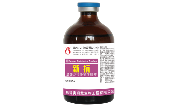 【药理作用】沙拉沙星属于动物专用的广谱杀菌药,对大多数革兰氏阴性菌和阳性的杆菌和球菌,包括绝大多数种类的克雷伯菌属、葡萄球菌属、大肠埃希菌、肠杆菌属、弯杆菌属、志贺菌属、变形杆菌属及巴氏杆菌等有较强的抗菌活性,对支原体的效果略差于二氟沙星。畜禽肌内注射吸收均较迅速,1~3小时达血药峰浓度。肌内注射的生物利用度:鸡71.7%,猪87%。在动物体内分布广泛。经肾排泄,尿中浓度高。猪静脉注射、肌内注射给药的半衰期分别是3.1小时和3.5小时,鸡肌内注射的半衰期是5.2小时。